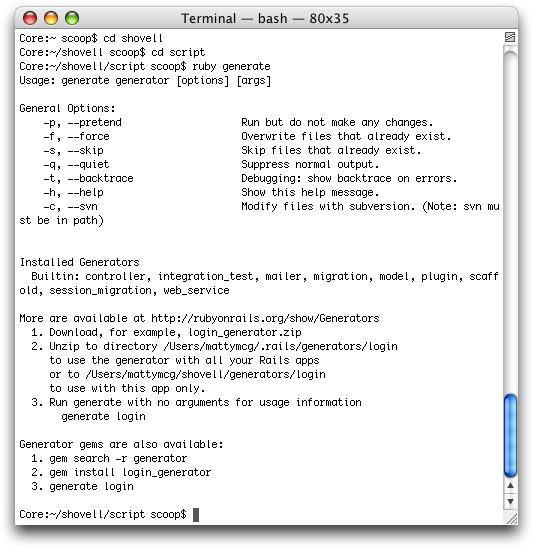 По умолчанию все Rails-приложения используют окружение для разработки, если не указано другое. Поэтому любая Rails-команда, исполняемая из командной строки, будет, на данный момент, воздействовать только на данные в БД этого окружения. В главе 12, Deployment and Production Use, будет рассказано, как переключиться в среду исполнения.