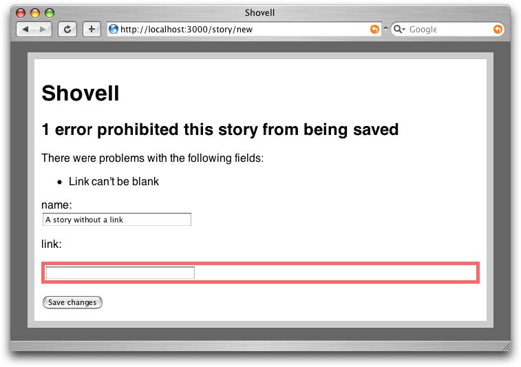 Как я упоминал, post – это еще один способ программно выполнить HTTP-запрос из теста. post принимает несколько параметров: в данном случае мы симулируем отправку рассказа. Для этого нам нужно передать хеш-таблицу, которая содержит значения обязательных атрибутов рассказа – символы, представляющие атрибуты name и link.