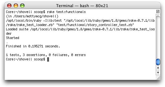 Еще раз, скелет функционального теста создается при генерировании StoryController. Этот скелет находится в файле test/functional/story_controller_test.rb: