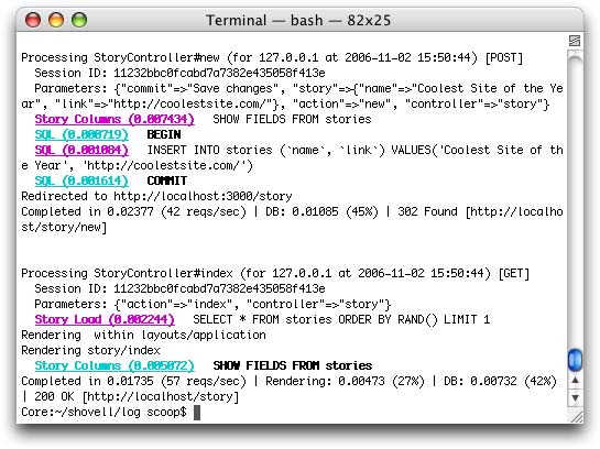 Если вас это заинтересовало, вы будете рады узнать, что ActionPack – еще и плодовитый писатель логов. Пример такого лога показан на рисунке 6.9.