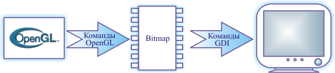 | ПРИМЕЧАНИЕ Схемы в данной статье сделаны по мотивам рисунков статьи Dale Rogerson, ”OpenGL VI: Rendering on DIBs with PFD_DRAW_TO_BITMAP”, april 18, 1995 из MSDN. |