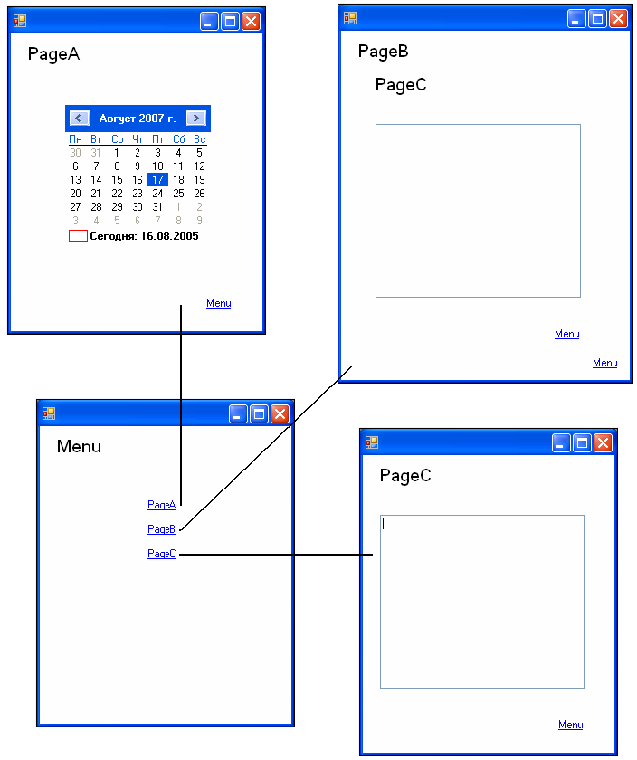 Разработка оконного приложения становится очень похожей на разработку Web-приложений, только в качестве браузера выступает форма, а в качестве страниц – UserControl. Благодаря этому можно создать довольно гибкий интерфейс.