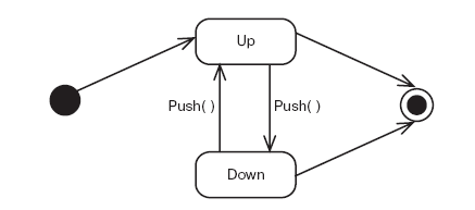 Для решения этой задачи нужно описать граф состояний в коде. На рис. 2.1 приведен очень простой, классический граф состояний, схематически описывающий смену состояния кнопки при ее нажатии (Down) и отпускании (Up) пользователем.