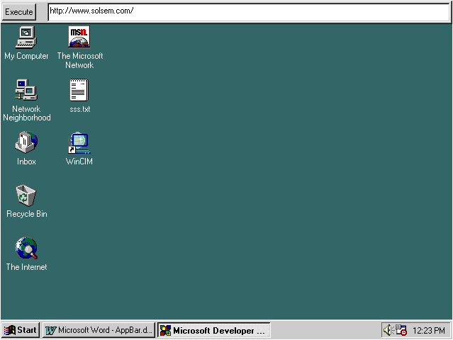 Эта панель содержит два элемента управления, кнопку “Execute” и окно редактирования. В окне редактирования Вы можете ввести любую, какую захотите команду оболочки. Нажмите клавишу Enter или кнопку “Execute”, чтобы заставить панель проанализировать команду и вызвать для её выполнения функцию Win32 API ShellExecute. В качестве команд оболочки Вы можете вводить названия программ, например Notepad или Calc, имена дисков или полные пути к каталогам, чтобы открыть окно Проводника, или Вы можете ввести имя файла документа, и соответствующее приложение будет запущено автоматически. Вы можете ввести даже сетевой адрес, как показано на Рисунке 6, в этом случае будет запущен Internet Explorer.