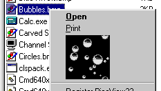 Существует интерфейс IContextMenu2, который, как заявляет Microsoft, поддерживается оболочкой версии 4.0. Однако, на Windows95 оболочка никогда не вызывает IContextMenu2. В результате вы просто не сможете сделать пункты меню owner-drawn в оболочке версии 4.0 (на NT4 может быть по-другому. У меня не было возможности проверить на NT4). Вы можете сделать так, чтобы пункт меню отображал битмап, но это приведет к тому, что когда этот пункт меню выбран, он выглядит просто безобразно.(Это то, что делает Pica View).