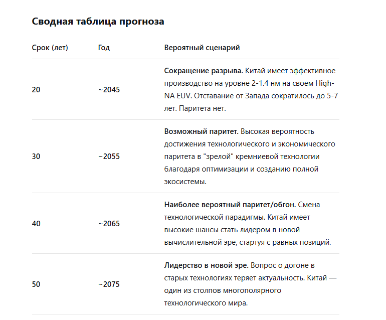 Итог: Наиболее реалистичный срок для подлинного паритета или обгона — 40 лет (к 2065 году).