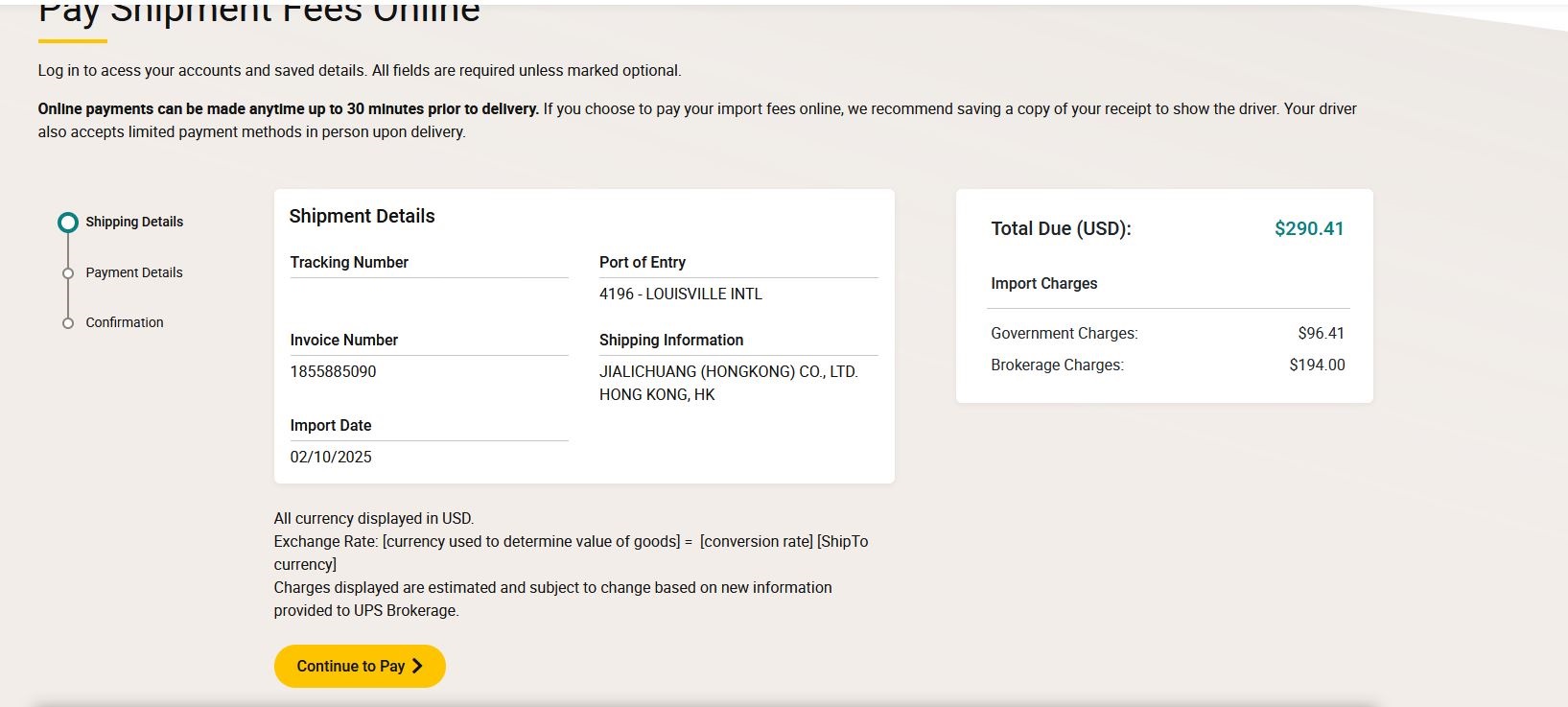 $194 — плата за услуги ups; и не относится к налогам на китайский товары