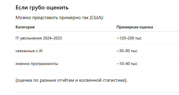 в 2024-2025 гг (даже когда ИИ ещё был люто кривой и косой) почти сотня тысяч тушек "покинула чат" (c) (из которых половина программисты), и это только в США (поэтому если прогресс продолжится теми же темпами, то на мороз очень скоро поедут целыми отделами и офисами)