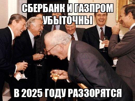 Они там наверное ржут, когда пусть даже и ненавистники России говорят что Сбербанк и Газпром убыточны и находятся на грани раззорения.