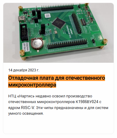 Новость про недавно выпущенную отладочную плату для МК К1986ВУ024, датирована декабрём 23го