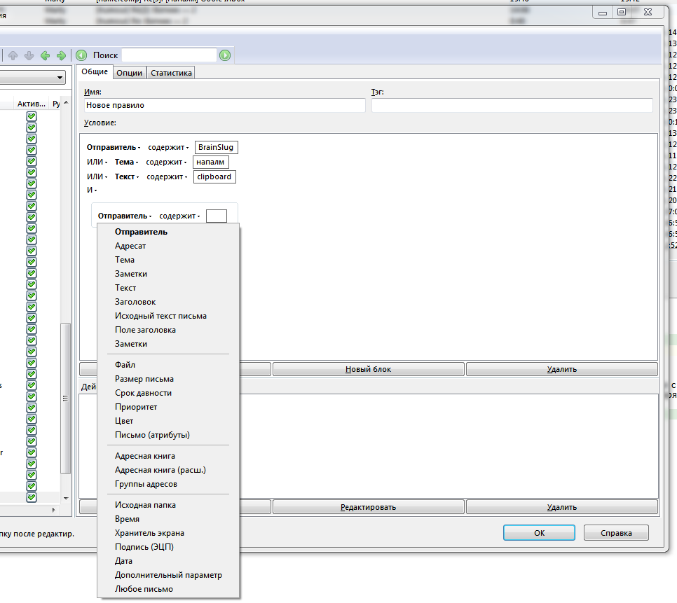 CC>>Пример: Ежедневно приходит несколько тысяч писем. Их все надо рассортировать по сложным правилам (типа if (a && (b or c) and (!d or e)) then {do1 do2 doX}) CC>>Каждая папка умеет самоочищаться по заданным правилам. BS>а если не секрет, какой почтовый клиент, который умеет все это? (ищу почту с возможностью такой сложной рассортировки, включая по контенту, — идеально чтобы был скриптинг. но пока такой не видел)