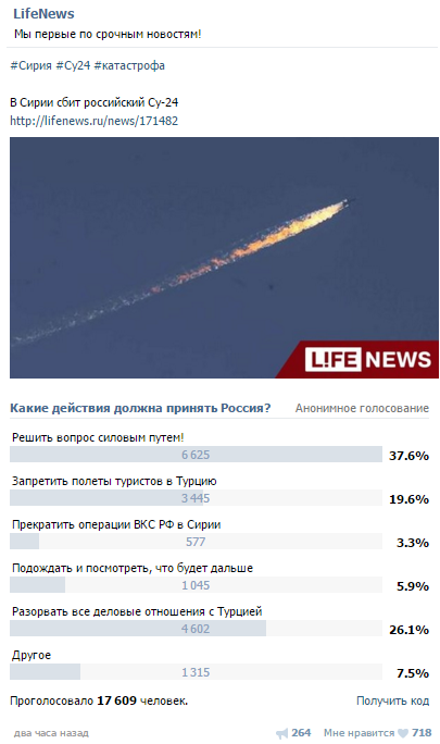 Пофиг, я согласен. АЭС отменить, газ перекрыть, послов выслать, туристов забрать и больше не посылать, развернуть на границе с турция-Сирия ПВО и никого из турции к Сирии не подпускать, поставки дармовой нефти ИГИЛ тоже перекрыть. На ЧМ18 не пускать.