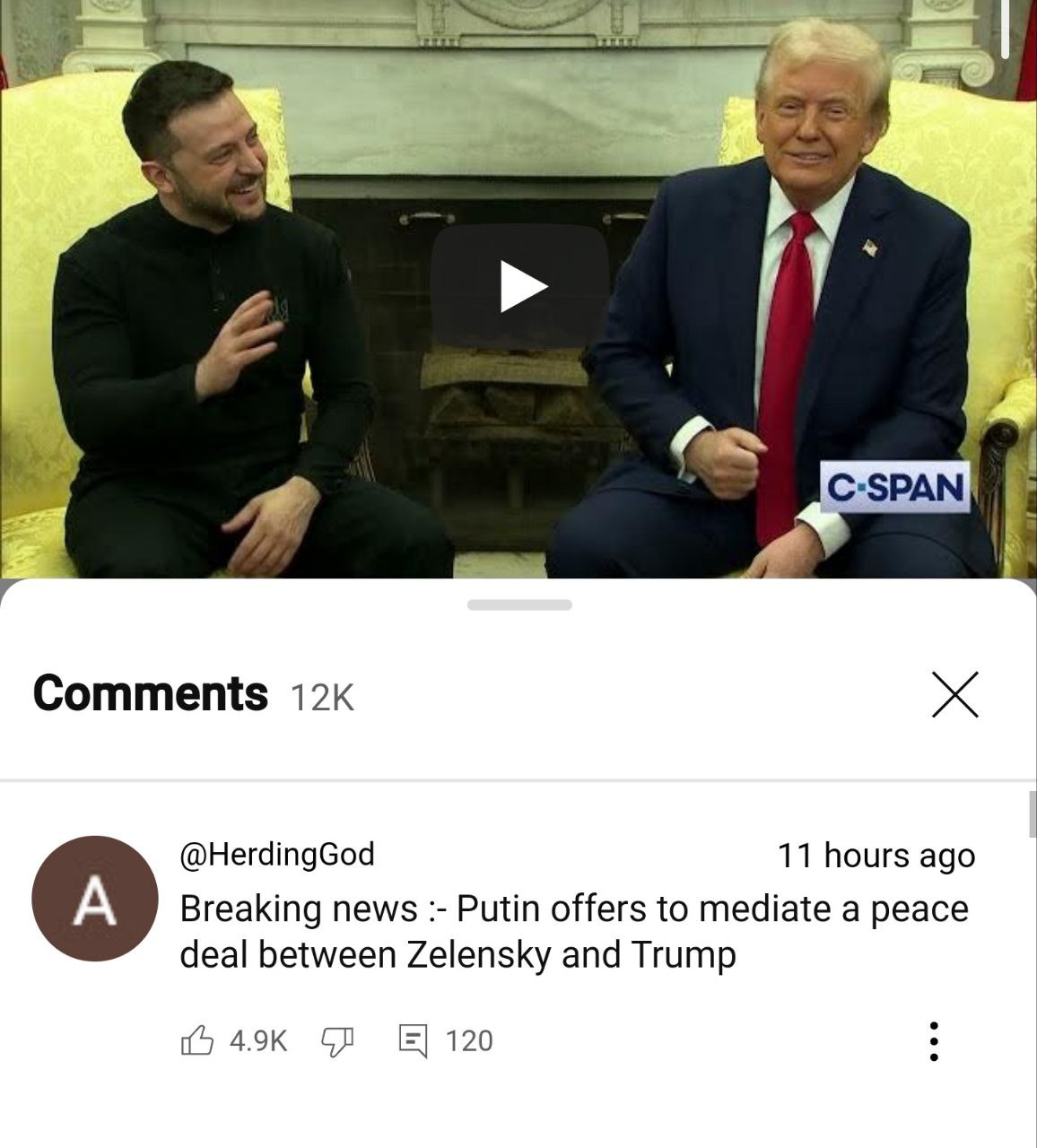 — Спросил мобилизованного солдата, Владимир Владимирович, он предложил вставить Зеленскому в дупу раскаленную кочергу.