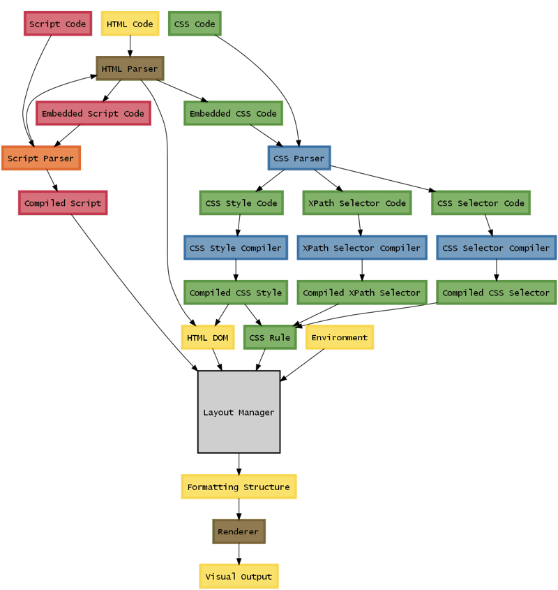 CSS Rule это два скомпилированных на лету DynamicMethod-а. Первый — проверяет условия, второй — модифицирует DOM. В мобильной версии (когда руки дойдут), будет два Jint-метода, если в .Net CF так и не появится компилятор.
