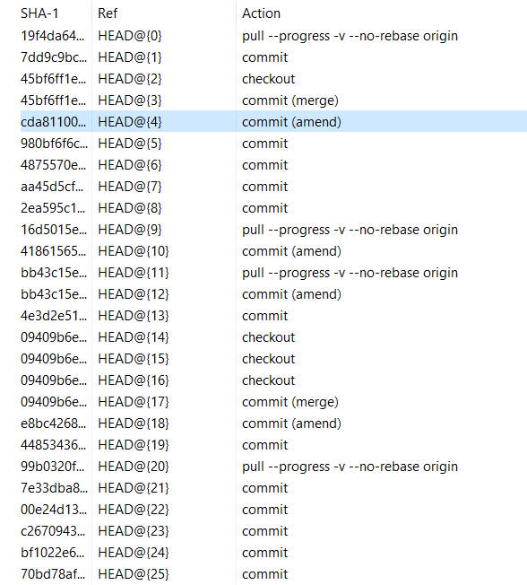 S>>·>В общем у тебя же есть вся история, погляди что в каждом коммите, время и т.п. reflog ещё погляди. S>>В том то и дело, что судя по логам, при мержах только один родитель. Это как? ·>Не понял. Лог на картинке показывает два родителя. ·>Мерж с одним родителем невозможен. Мерж, по определению, это коммит, у которого более одного родителя. ·>git reflog в студию.